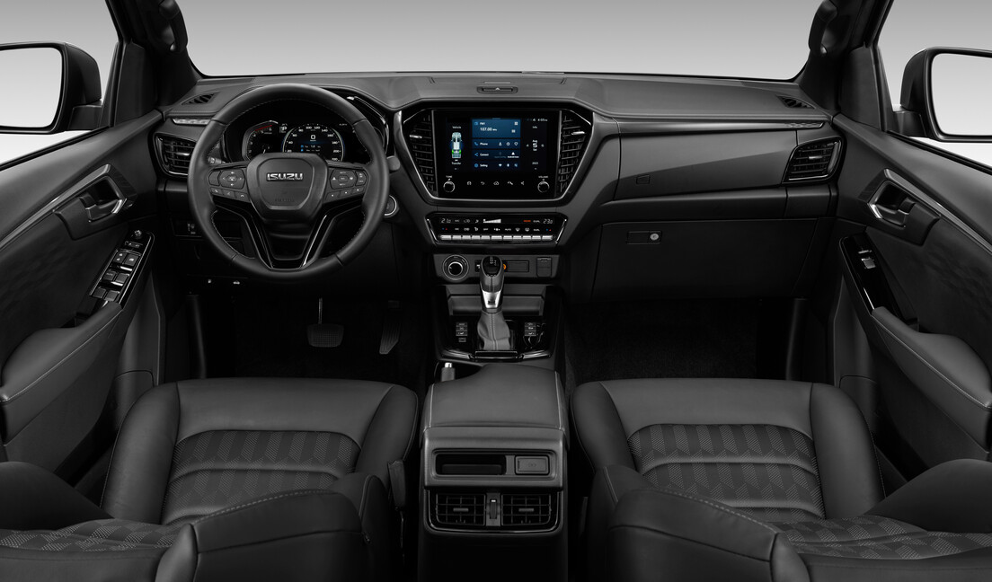 Mit dem höhenverstellbaren Sitz deines D-MAX veränderst du deine Sitzposition nach Belieben und maximierst deinen Fahrkomfort durch die Lordosenstütze und Sitzheizung. Abbildung zeigt die Sitze des V-CROSS.